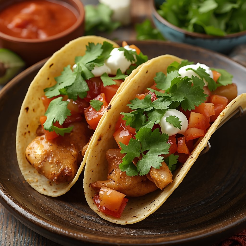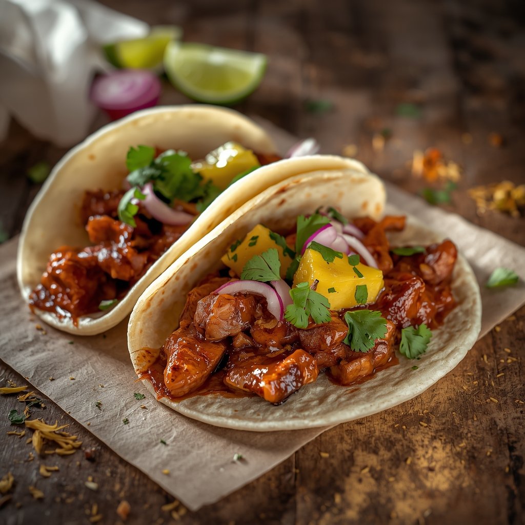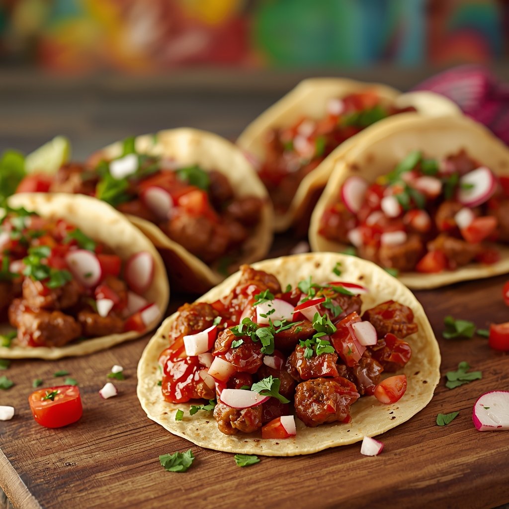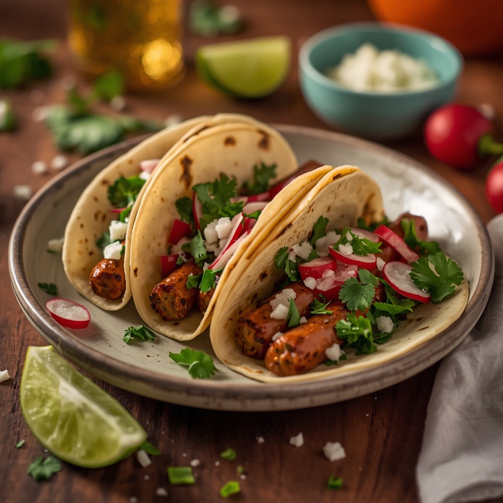 (asada, pastor, pollo o chorizo), preparados en tortilla caliente y