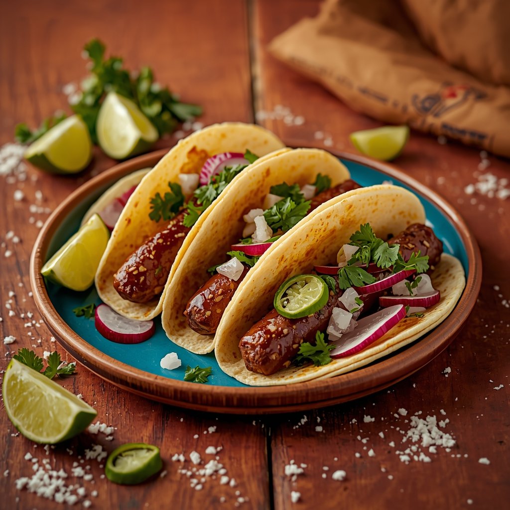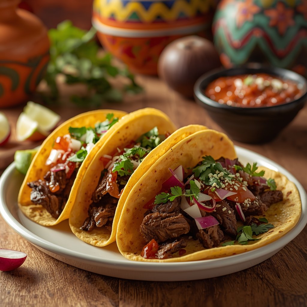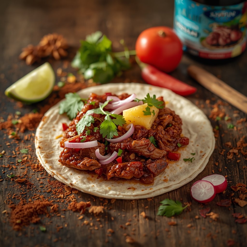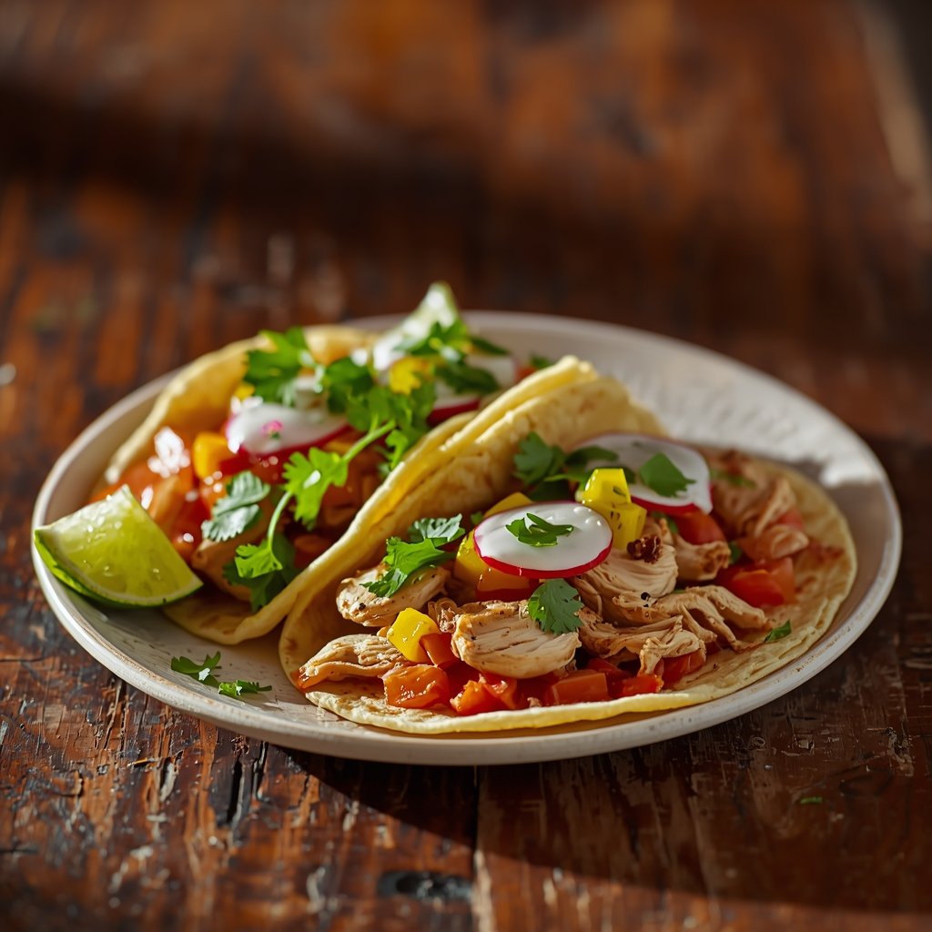 (asada, pastor, pollo o chorizo), preparados en tortilla caliente y