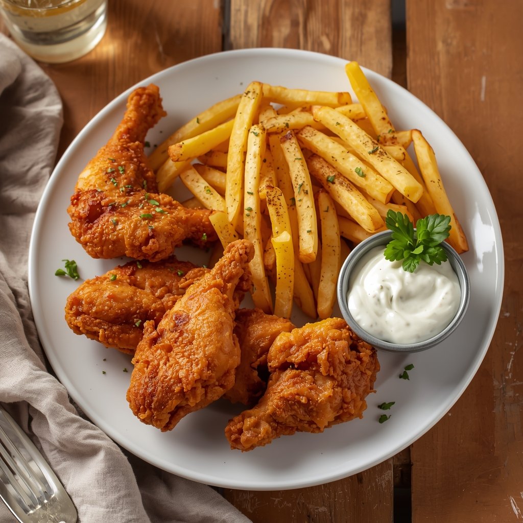 Pollo, salsa roja o verde, arroz y frijoles refritos.